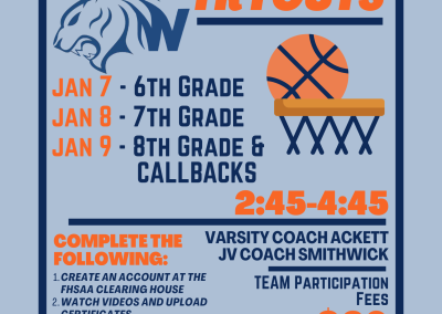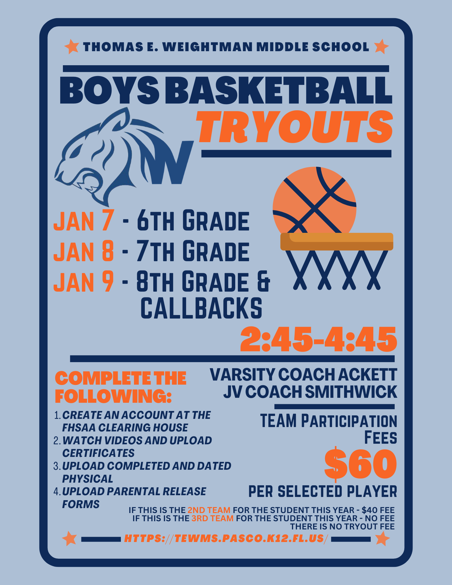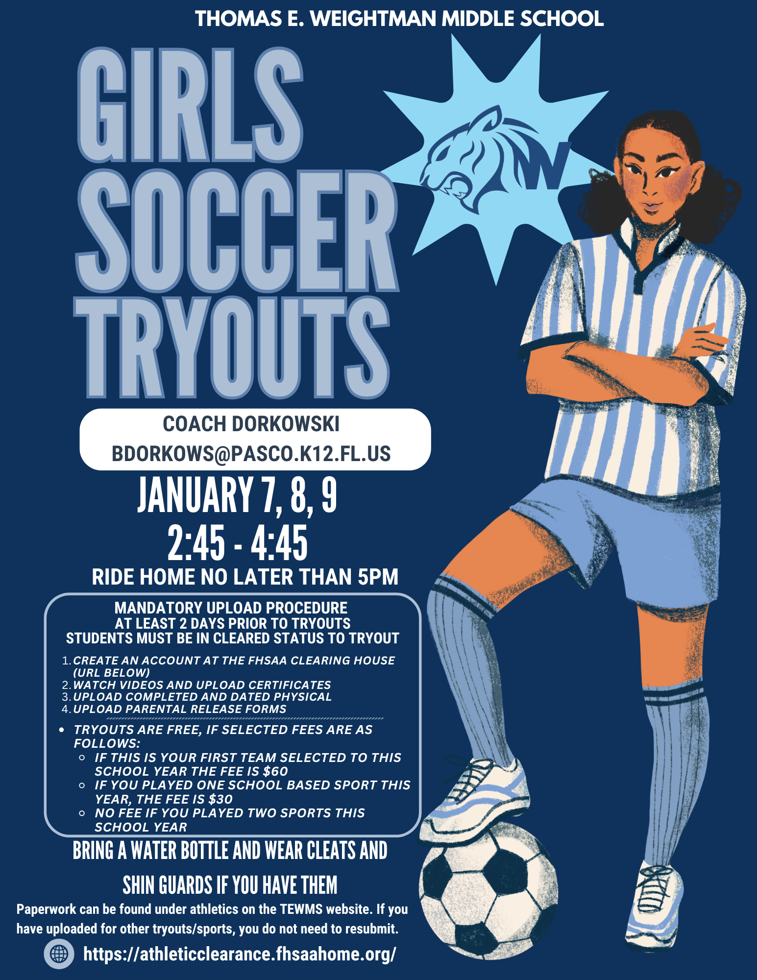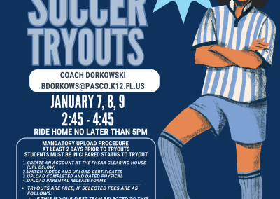 Please do not wait until the last minute and expect to tryout the next day.
